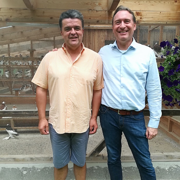 Ein echter Korpftaubenspezialist, der unser wunderschönes Hobby durch und durch lebt, ist Martin Gangkofner. Er ist nicht nur seit über 40 Jahren begeisterter und erfolgreicher Taubenzüchter sondern auch Zuchtwart im Sonderverein des Sächsischen Kröpfers und Kropftauben-Preisrichter. Überdies ist er international vernetzt wie kaum ein anderer aus der Züchterschaft und gilt beinahe auf der ganzen Welt als Experte für Kropftauben. Im September hat mich Martin Gangkofner zusammen mit seiner Lebensgefährtin besucht. Es waren abwechslungsreiche und interessante Stunden, voller guter Gespräche und interessantem Erfahrungsaustausch. Einen meiner Verkehrtflügelkröpfer nahm Gangkofner für Kreuzungszwecke mit ins heimische Niederbayern. Mit den besten Wünschen für die Zukunft verabschiedete ich diesen geschätzten Zuchtfreund. Auf den Ausstellungen treffen wir uns bestimmt wieder.