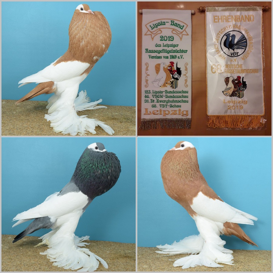 Bei der VDT-Schau im Dezember 2019 in Leipzig konnte ich wieder ein überragendes Ergebnis erzielen. Drei meiner Taben waren mit v 97 und fünf Tiere mit hv 96 bewertet. Die drei Tiere mit Höchstnote ließ ich vom Tierfotograf Rudi Proll ablichten....